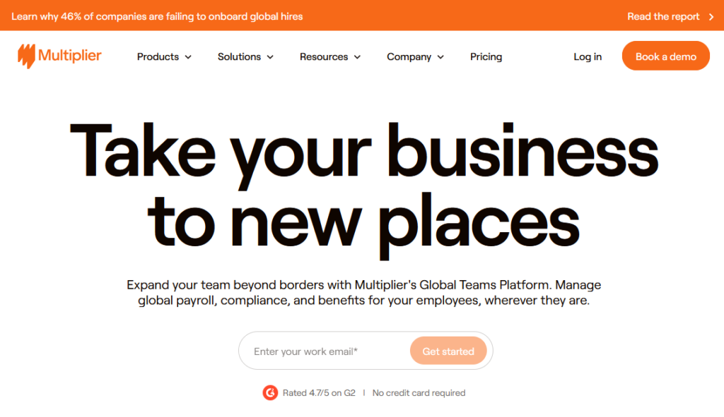 Founded in 2020, Multiplier has built a strong reputation in the Asia-Pacific region, making it a particularly relevant option for Australian companies expanding into markets like Singapore, Japan, or India. Coverage spans 150-plus countries, with onboarding typically completed within 24 to 72 hours.