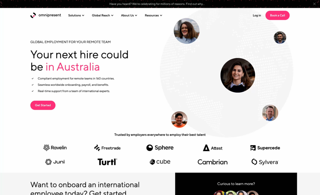 Founded in 2019 and headquartered in London, Omnipresent has quickly established itself as a significant player in the EOR space, now operating across 160+ countries. What sets it apart from most competitors is its range of employment models. Beyond standard EOR, it also offers Professional Employer Organisation (PEO) services in the US and UK, and Virtual Employer Organisation (VEO) options for more specialised hiring situations. For Australian companies with varied hiring structures across different markets, this flexibility has real practical value.
